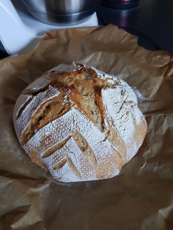 Napi bevásárlásuk során néhányan tanácstalanul álldogáltak a hűtőpolcok előtt és nem hitték el, hogy élesztő valóban nincs. Hiánycikk. Óriási értékké vált az 5 dekagrammos kis csomag. Mivel lehet akkor sütni? Amíg liszt, víz és só rendelkezésre áll, addig nem kell kétségbe esni. Ezt is Szabitól a Péktől tanulhattuk meg. Addig lehet kenyeret (és kalácsot, kakaós csigát, pogácsát) az asztalra tenni.